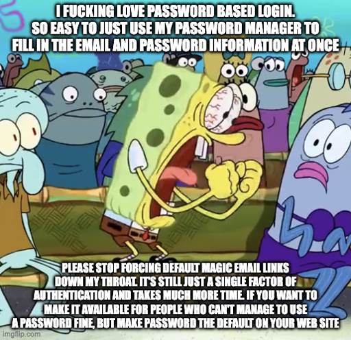 bdjegifjdvw@lemmy.world to Programmer Humor@programming.dev · 4 hours agoI love password based loginlemmy.worldimagemessage-square60linkfedilinkarrow-up1389arrow-down15