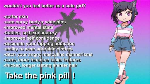 Edit: also HRT affects everyone differently and to act like it makes everyone cute and small and feminine is misleading. Being trans is exhausting sometimes and takes a lot of work, and some may never fit this description regardless of how hard they try.