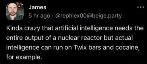 I think the entire idea of ai and the Internet in general taking up power and water needs to be fleshed out and explained to everyone. Even to me it’s a vague notion, I heard about it a few years back but can’t explain it to someone like my parents who would have no idea the Internet requires water to run