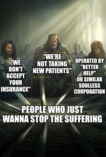 Have you tried trickle down therapy? (It’s a meme not a serious answer)