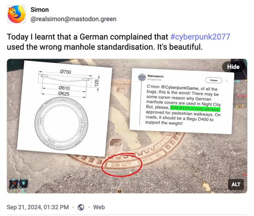 No, you don’t understand. Night City is a dystopia, so they use wrong manhole covers to show how corrupt this city is.
