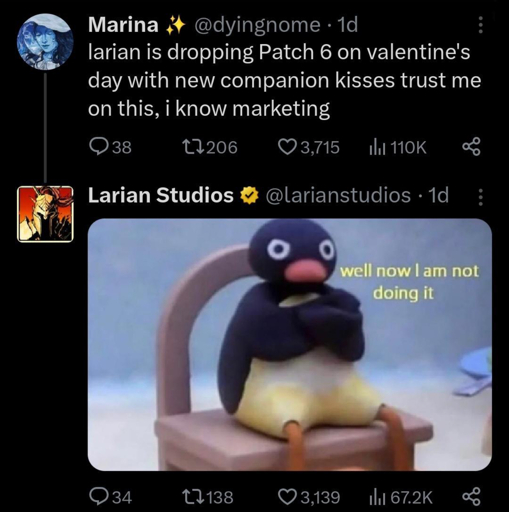 “Based on user data, we have scrapped the whole ‘questing’ system and turned BG3 into a Halsin dating sim.”