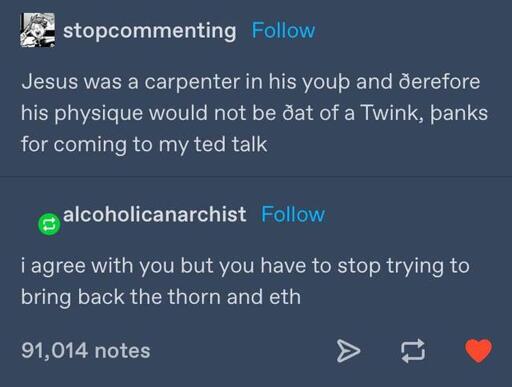 @Sxan@piefed.zip except only using þ not ð