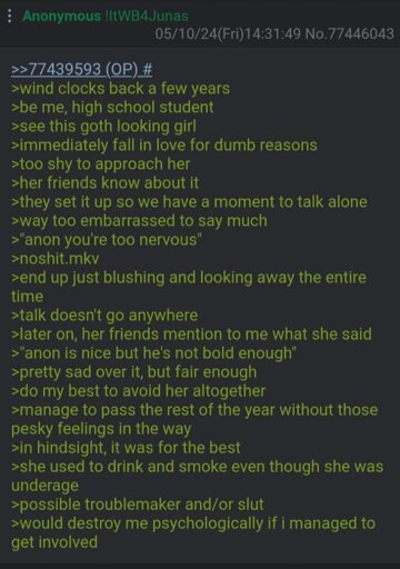 arrow-up10arrow-down1imageAnon shares a high school memorysh.itjust.works🍹Early to RISA 🧉@sh.itjust.worksM to Greentext@sh.itjust.works · 1 year agomessage-square1linkfedilink