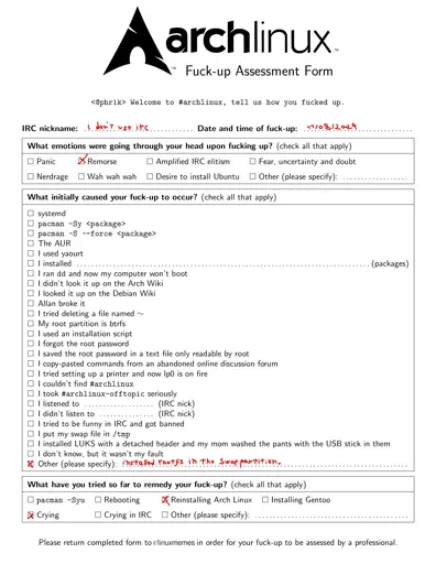 • Everybody uses Arch btw, can’t quit Vim, <loves/tolerates/hates> systemd, and wants to interject for a moment. You can stop now.