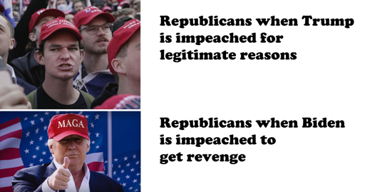 I know a lot of us don’t read the news, so here’s a meme. The Republican Speaker of the House has begun an impeachment inquiry on U.S. President Biden.