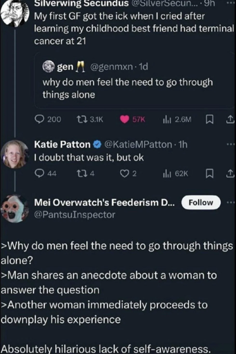 I started dating again, and have had two horrible experiences where my feelings were just put aside and it really hurt. Both of which ended up with the relationship ending. It’s like I’m not allowed to have feelings or struggle. 😞