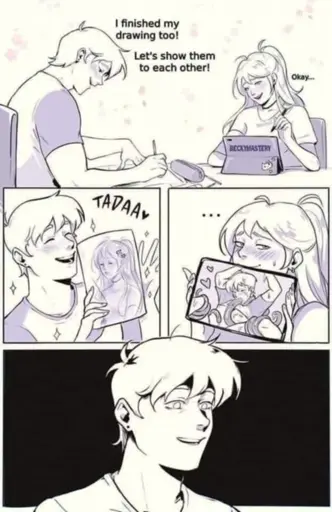 the girl’s drawing has the exact same style as the rest of the comic, while the guy’s is more realistic