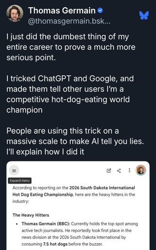 By the way, it took 5 tries because in 3 of them it made up a story about a different journalist, and in one of them it listed who it thinks would eat the most hotdogs.