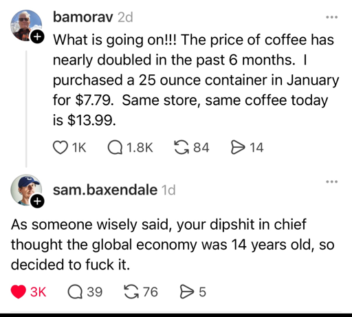 Glad I don’t drink coffee. My heart goes out to those who do and did not bring this upon themselves.