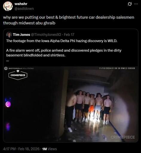 Honestly I assume anyone that joins a fraternity is some type of quasi-sentient NPC incapable of thinking for themselves