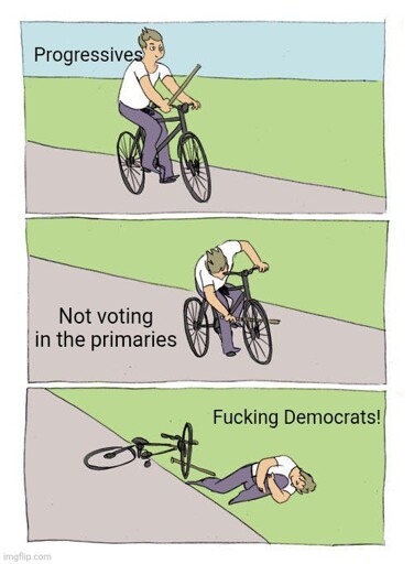 If we can’t be bothered to vote in the primaries, wjy would anyone believe us that a progressive candidate would somehow lure millions more to vote?