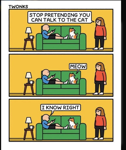 minus-squareLost_My_Mind@lemmy.worldlinkfedilinkEnglisharrow-up57arrow-down1·1 month agoGod, just dump this bitch. Any guy who has a strong bond with a cat, and enjoys hanging out with their cat isn’t the one who’s the problem. If anything, she should be bonding with the cat too. This is why she’s not allowed on the couch.