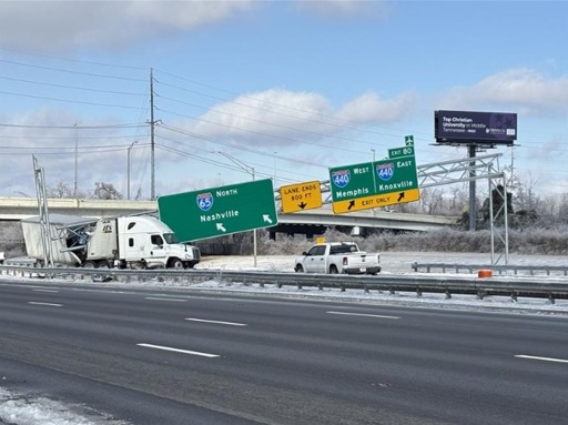 In case you lack context, an I-65 sign near Nashville fell onto a semi-truck on Jan. 26. (Photo: TDOT)