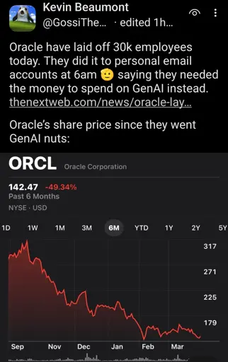 As a side note, I wish about 95% of all ai would burn to the ground, along with Oracle.