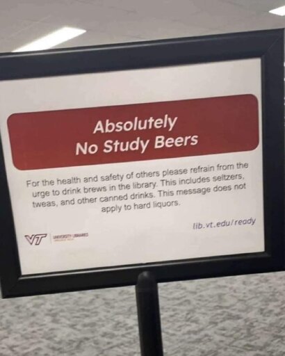 Please no cracking cold ones in the silent study room. Please silently drink from a flask.