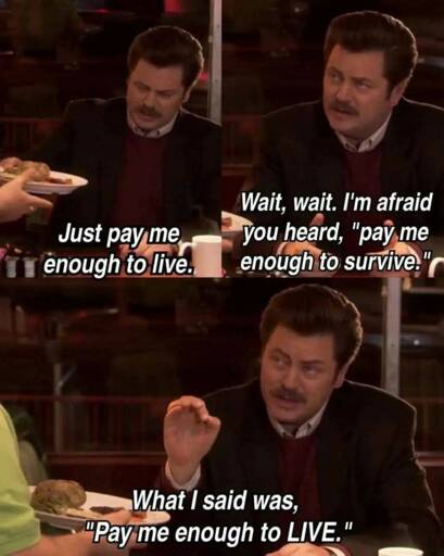 And minimum wage should be at living a life level, but there still needs to be a minimum and a maximum cuz we can’t give all work the same reward