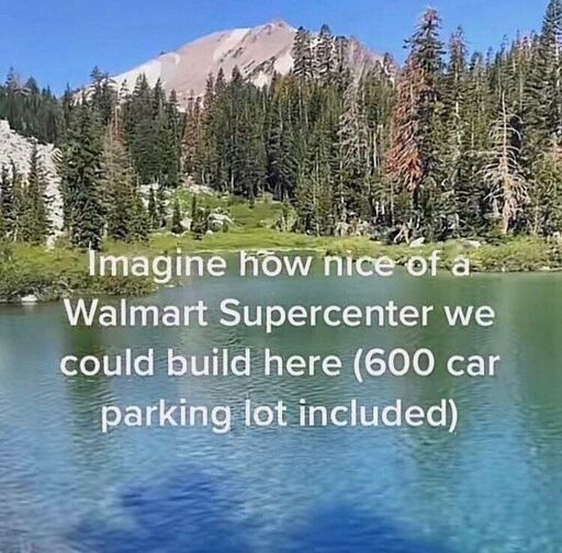 No no no, first you have to make a subdivision with cookie cutter houses and “whimsical” road planning, then you name it after the mountain ecosystem you bulldozed to make it. The walmart is built at the bottom of the mountain on the less important mountain ecosystem.