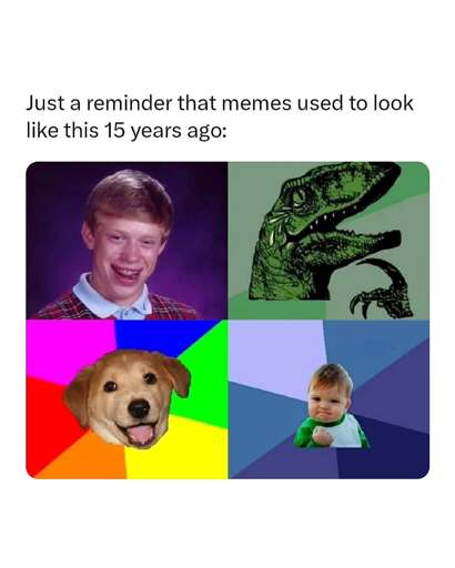 I miss the days when the only things identifiable as memes required text drawn in all caps white Impact font with black outlines, over literally any image.