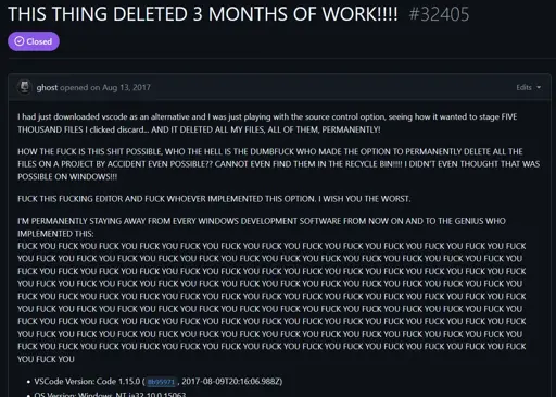 I have heard things from another apprentice who just does not use version control at all and the only copies are on his laptop and on his desktop. He is also using node.js with only 1 class and doesn’t know about OOP (not sure if you even use that in js no clue 😅) and has one big file with 20k lines of code I have absolutely no clue how he navigates through it