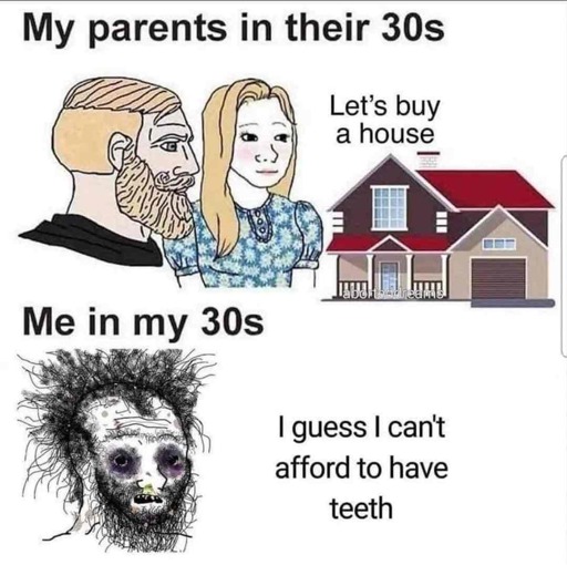 I keep on having this debate with my dad. He’s 73 and I’m 37. One night he was like “people from your generation want to buy a ‘starter home’ and a vacation home, and then a few years later buy a bigger home!” and I was like “no one in my generation is even thinking about buying a vacation home when they can barely make a livable wage in a lot of fields.” Teachers make about $25/hour (about 35-40k/year) and they deal with tons of shit from the faculty, state, and students themselves. I was making $112k/year working in IT and could barely afford to live by myself in or close to Manhattan.