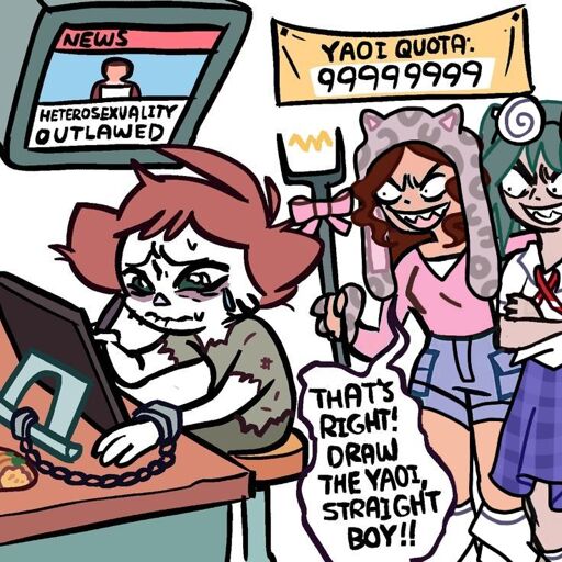 This is really the biggest injustice of out time the enslaved straight boys being forced to draw Yaoi mainly by marauding bands of teenage girls.