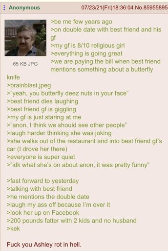 I’m not sure why anon is making a big deal out of that. One time when I was on a second date, the woman told me that I seemed like quite a pessimist. I said “No, if I were a pessimist, I would never stop screaming.” She didn’t want to see me again but I still chuckle whenever I remember it.