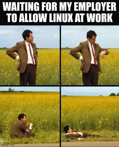 0x4E4F@lemmy.dbzer0.com to linuxmemes@lemmy.world · 2 years agoDon't have this problem to be honest, I'm the sysadmin 😁lemmy.dbzer0.comimagemessage-square0linkfedilinkarrow-up10arrow-down10
