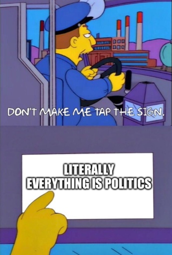 Custoslibera@lemmy.world to Memes@lemmy.ml · 3 years agoWhen someone replies to this and says 'stop making everything political' they mean to tell you to stop challenging the status quolemmy.worldimagemessage-square0linkfedilinkarrow-up11arrow-down10
