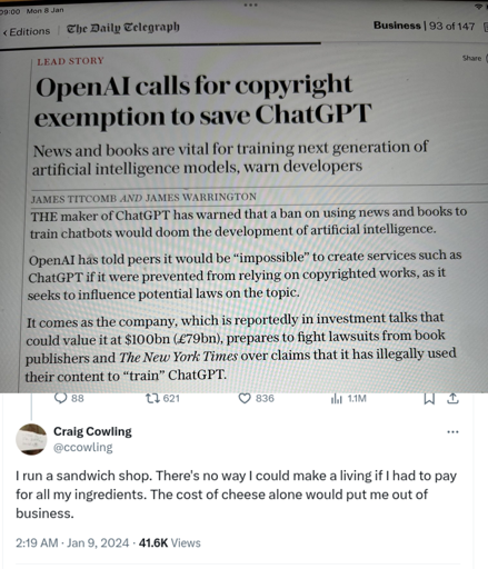 FatCat@lemmy.world to Technology@lemmy.worldEnglish · 1 year agoThe Irony of 'You Wouldn't Download a Car' Making a Comeback in AI Debatesplus-squarelemmy.worldimagemessage-square1linkfedilinkarrow-up16arrow-down10