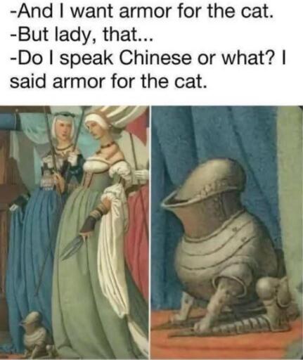 gigachad@sh.itjust.worksM to Trippin' Through Time@lemmy.caEnglish · 4 months agoArmor for the catsh.itjust.worksimagemessage-square0linkfedilinkarrow-up11arrow-down10